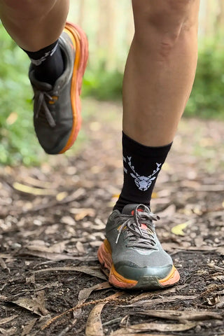 Trail running socks are designed to offer support and protection in key areas such as the ankles and arch of the foot. Additionally, the ability to absorb moisture and prevent blisters is essential.